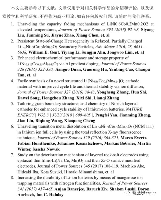 高鎳三元匹配硅碳材料已經(jīng)成為了目前高比能電池的主流技術(shù)路線,目前主流廠家推出的三元動力電池比能量已經(jīng)可以達(dá)到230-260Wh/kg,并且還在持續(xù)提高之中。雖然三元材料電池比能量大幅提高,但是在循環(huán)壽命上仍然不盡如人意,這其中的關(guān)鍵就在于正負(fù)極材料,硅碳自然不必說,我們在之前的文章中已經(jīng)對硅碳材料的衰降機理和改善措施做了非常詳細(xì)的介紹,后續(xù)我們也會推出硅碳材料的專題。高鎳三元材料循環(huán)穩(wěn)定性差也是造成高比能電池衰降速度快的重要原因,今天小編就和大家一起從三元材料的衰降機理到解決措施梳理一遍,希望能對大家的工作有所幫助。