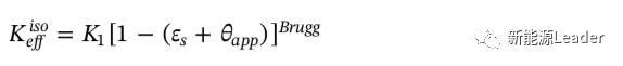 而電極的電子電導(dǎo)率K也會隨著失去活性的活性物質(zhì)比例的增加而降低,如下式所示,其中Brugg為Bruggeman常數(shù),約等于1.5。